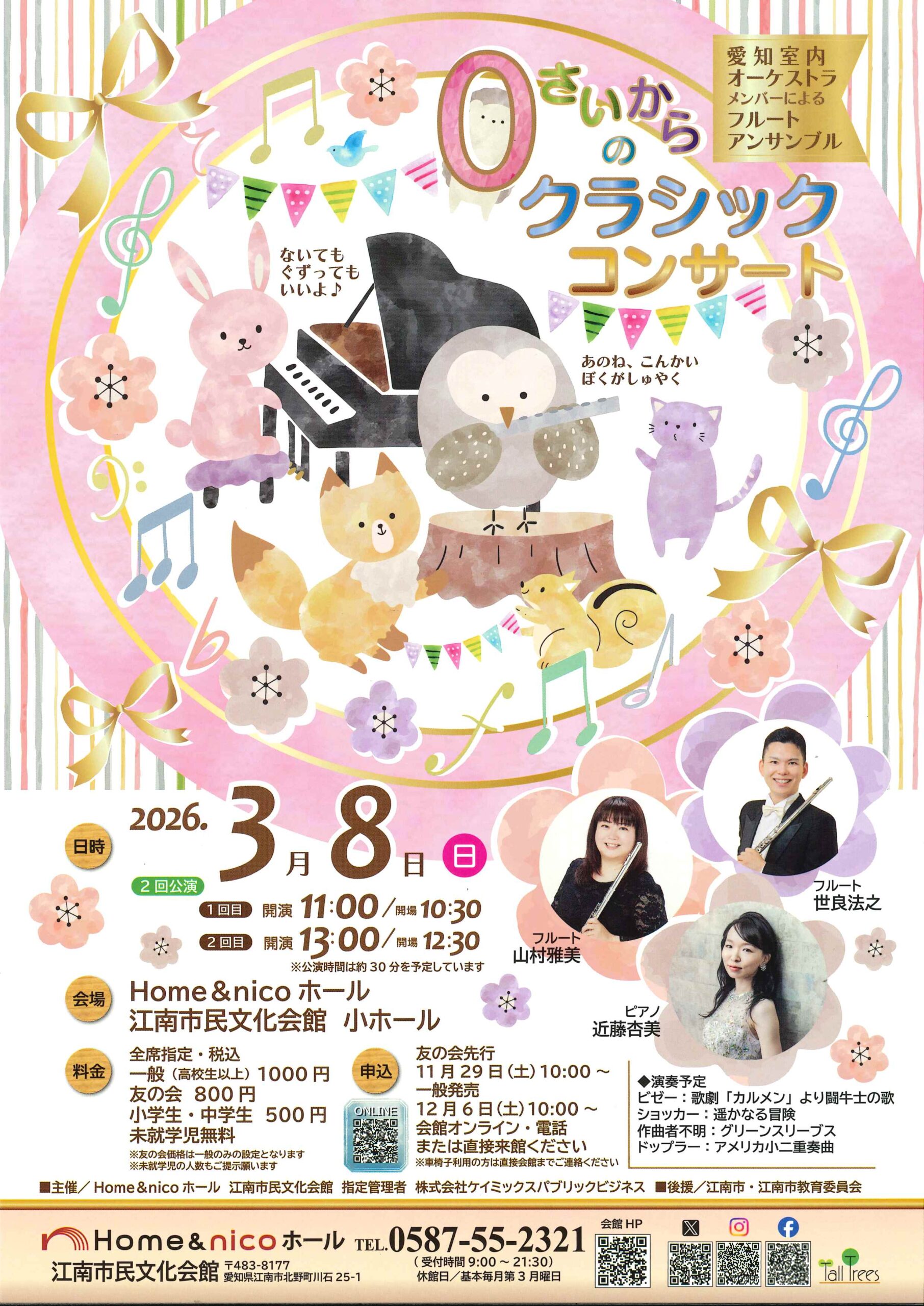 愛知室内オーケストラメンバーによるフルートアンサンブル♪ 0さいからのクラシックコンサート